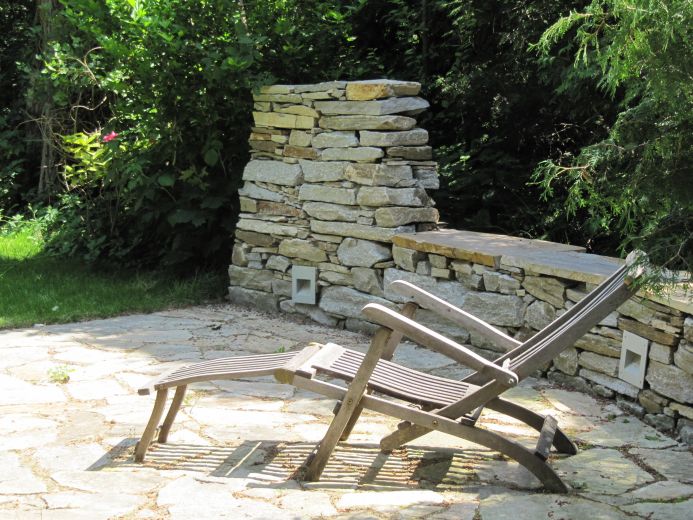 Im Zuge der Renovierung der rd. 100 Jahre alten Villa in Hietzing wurde der Garten neu gestaltet. Teilweise konnte der Gehölzbestand in den Randzonen erhalten bleiben, so dass der hintere Gartenbereich weitgehend uneinsehbar ist. Die Terrasse im EG wird von einem breiten, vorgesetzten Balkon großteils überdacht. Direkt davor liegt über die gesamte Hausbreite ein Schwimmteich. Über den Holzsteg oder den seitlichen Plattenweg gelangt man auf eine offene Rasenfläche, die mit einer Natursteinterrasse und einem Kiesbeet mit Feuerschale und Steinsetzungen abgeschlossen wird. Die Gartenhütte verschwindet im Sommer hinter einer XL Gräserzeile.